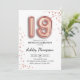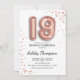 19th birthday party invitation. Elegant design in faux glitter rose gold. Invite card features rose gold number 19 balloons and script font. Perfect for a stylish bday celebration. Message me if you need custom age.