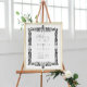 Antique stamped border frame with editable colour; "welcome to the wedding of" colour can be changed, or you can delete; open full editor to change the font, line spacing, add more columns, choose new poster size. You can also transfer to foam core, canvas and more!