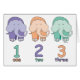 Whimsical elephants in terrific bright pastel colours are just the first of many. This card is great one for baby and baby showers. You can purchase as is or add your personal message to the inside. This card matches the "1,2,3 Elephant" baby outfit. To view more work by the artist please visit - www.dagdart.com
