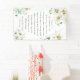Inspirational quote scripture personalised wedding banner depicts an elegant floral garden design with simple white daisies and greenery. It features Bible Verse 1 Corinthians 13:4-8, " Love is patient, love is kind. It does not envy, it does not boast, it is not proud. It does not dishonour others, it is not self-seeking, it is not easily angered, it keeps no record of wrongs. Love does not delight in evil but rejoices with the truth. It always protects, always trusts, always hopes, always perseveres. Love never fails." Customise with names and date.