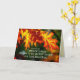 Inspirational quote greeting card depicts beautiful yellow. orange and red fall leaves. It features Bible Verse 1 Corinthians 15:57, "Thanks be to God! He gives us the VICTORY through our Lord Jesus Christ."