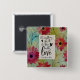 Button with inspirational quote Christian scripture depicts an abstract floral watercolor with pink and black flowers on a green background. It features a beloved Bible Verse from 1 Corinthians 16 14, "let everything you do be done with love."