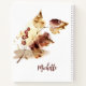 Inspirational quote scripture personalised notebook depicts a modern fall abstract design in warm autumn trendy colours of plum, beige, blue and green with gold line art flowers. It features Bible Verse 1 Corinthians 16:14, "Let all that you do be done in love." Customise the back with a name or the details of your choice.