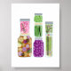 This food canning jars poster has several jars of canned vegetables, some are even pickled. This is group #1. This print is in a very modern graphic style with a mid century modern black ink print on top. Transfer this food canning jars print to other wall products if you want and it can be made bigger if you need it larger. See the collection to mix and match with other vegetable or pickle prints not in this print.
