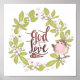 1 John 4:16 God is Love Floral Wreath with Bird Poster
