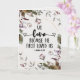 Inspirational quote scripture greeting card depicts a simple floral design with white and lilac flowers and leaves. It features Bible Verse 1 John 4:19, "We love because He first loved us."
