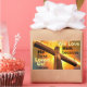 Inspirational quote sticker depicts a Christian wooden cross with nails and features Bible Verse 1 John 4:19, "We love Him because He first loved us."
