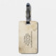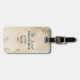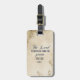 Luggage tag depicts a simple gold leaf design on a cream background. It features an encouraging inspirational quote taken from Bible Verse 1 John 4:4, "The Lord is greater than the giants you face."