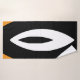 This design features soft, flowing shapes in orange, white and black. It looks like petals or waves, giving it a bold and modern feel.