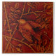 This is one of a pair of reproduction Victorian sculpted molded bird tiles in a rich majolica we'd describe as a cinnabar color. The original antique tiles were made by Minton China, one of the premier English tile producers of the late 19th and early 20th centuries. These Victorian tiles are also suitable for Arts & Crafts, Craftsman, Bungalow, and other styles of decorating. Note that, although the reproduction tiles look as 3-dimensional as the original, they are printed in a trompe l'oeil ("fool the eye") style that captures all of the carved detail of the originals on a flat, smooth tile.