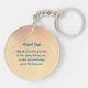 Beautiful custom keychain depicts a women in a field with her hands lifted to the Lord. It features Bible Verse 1 Peter 5:7, Cast all your cares on him because he cares for you. Personalise the back name and greeting.