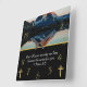 Gold Christian Faith with a moutain peak reflection in a blue lake and blue sky with the text saying.