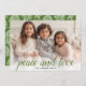 1 Photo Christmas Script Green Damask Peace Holiday Card