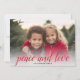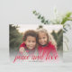 1 Photo Christmas Script Red Damask Peace Holiday Card