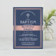 Announce the birth of your baby girl and invite family and friends to the baptism with this elegant custom photo navy blue and faux rose gold foil invitation. All text is simple to customise, so it can include any wording regarding the service and reception. This combined baptism invitation and birth announcement is a chic and elegant way to share all the information on one card, rather than two. The navy blue and pink design features 1 picture of your choice, faux ribbon overlay, stylish art deco inspired typography, and modern script calligraphy. Baby photo and birth details, such as arrival date, weight and length appear on back. Please note that rose gold is printed pink colour, not metallic foil. Congratulations on the arrival of your new little one!