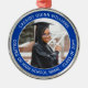 Congratulations to the graduate! Commemorate graduation day with a custom photo royal blue and white premium metal round Christmas ornament. The picture and all text on this template are simple to customise. Include any favourite inspirational quote, motivational saying, school name and degree, congratulations, thanks mum and dad, or other message of your choice. The design features a modern royal blue and white border, personalised elegant typography name, school, & class year in a circle, and one photo of the graduate, such as a senior picture or image from the commencement ceremony. Makes a thoughtful keepsake graduation gift idea. Use as party favours or decorations for a stylish addition to your special day celebration.