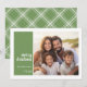Vintage green Plaid Pattern on the back - A simple, minimalist Holiday greeting with 1 square photo and modern calligraphy. Crop your photos into squares before uploading.