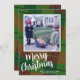 1 Photo with Script and Retro Plaid Pattern green Holiday Card