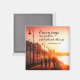 Magnet with inspirational quote Christian scripture depicts a photograph with the sun setting over the water and four friends walking on the dock. It features a portion of Bible Verse 1 Thessalonians 5:11, "Encourage one another and build each other up."