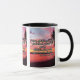 This two-tone mug showcases a design that features a Beth Ellen print font with white letters black outline displaying the "1 Thessalonians 5:21-22" KJV bible scripture verse over this picture of a beachside view with palm trees, vibrant coloured water, and island silhouette in the distances under a cloudy abstract coloured sky in the background of this faith based theme. This verse is referencing the Book Of 1 Thessalonians 5th chapter showing verses 21 through 22 in this bible scripture quote theme from the King James bible. The rim & handle are glazed in matching colours available in 11-ounce or 15-ounce sizes microwave and dishwasher safe ceramic construction.