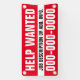 Are you hiring and want to get the word out? This economical 1' x 2' single sided, "Help Wanted" banner with job description line and phone number, is fully customisable! For indoor or outdoor use. All banners are hemmed and welded for a clean finished edge. For easy outdoor installation, on any surface, use the grommet option.