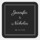 Elegant Formal Black And White Wedding Square Sticker.