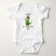 Cute baby boy first St. Patrick's Day dinosaur baby bodysuit. The dinosaur is dressed in green for the St. Patrick's Day celebration. This is an adorable 1st St. Patrick's Day t-shirt for a baby boy.