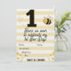 Buzz on over for the cutest celebration! This cheerful bee-themed invitation is perfect for your little one’s first birthday bash. Featuring a bold number “1,” a smiling cartoon bee with a dotted flight trail, and sunny yellow-and-white stripes, this design sets the tone for a joyful Bee-Day party. Delicate daisies and floral accents add a fresh springtime touch, while the whimsical typography invites guests to join the buzz.