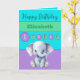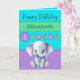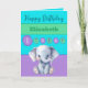 1st birthday add name girl cute elephant purple card