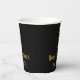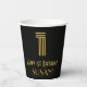This 1920s-1930s style inspired and vintage look birthday paper cup design features a large art deco inspired style number “1”, along with the birthday greeting message “Happy 1st Birthday,” and a customisable name. The background is coloured black. 1920s-1930s style inspired birthday themed paper cups like this might be used at a birthday party for somebody who is celebrating their 1st birthday. [~Z0000546]