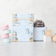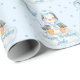 A cute 1st birthday gift wrap with a watercolor cartoon baby boy penguin sitting on a cloud holding an age balloon and a blue polka dot/ confetti background A sweet design for a little boy who will be one years old. Add the child,s name and age to customise it for that special baby boy. Customise by removing the age for a lovey baby shower wrapping paper.