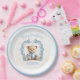 Birthday Paper Plates with a cute teddy bear and balloon arch in soft light blue and beige. Cute design for first or any Birthday of a little boy. Easily personalise all the text. Please visit the store for the full line of products that are available :) - Kate Eden Art