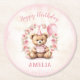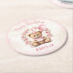 1st Birthday Bear Pink Roses Round Paper Coaster