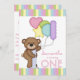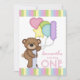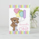 1st Birthday Bear Rainbow Stripes and Balloons Invitation