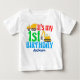 A cute first birthday t-shirt for a baby boy who likes construction vehicles and trucks. This features a yellow cement mixer and a digger next to the words It's My 1st Birthday and your child's name in blue. A great personalised party tee.
