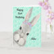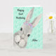 1st Birthday card for a girl with a cute bunny face on a heart green background. Thanks to Creative Fabrica for some of the elements in the design.