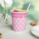 This sweet and whimsical paper cup is filled with an adorable pink chequerboard design, with room at the top to add text celebrating your little ones first birthday. This is part of the 1st Birthday Cupcake collection, look for coordinating plates, favour bags, invitations and more.