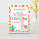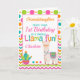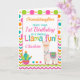 A fabulous colourful polka dot and chevron 1st birthday card. Send to a baby girl to wish her a 'whole llama fun' on her birthday. Bright pinks, teals and orange make this a eye catching design. Personalise with your own message. Perfect for a great granddaughter or niece.