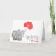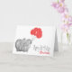Personalized 1st birthday card, with an elephant with pink balloons.