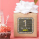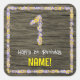 1st Birthday: Floral Number, Faux Wood Look, Name Square Sticker