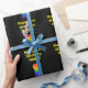 This exciting, joyful, and cheerful birthday wrapping paper design features a large number “1” having a multicolored rainbow spectrum inspired gradient appearance, in addition to the birthday greeting message “Happy 1st Birthday,” and a personalised recipient name in bold yellow text. The background is coloured black. Cheerful wrapping paper like this might be a fun way of wrapping a birthday present or gift being given to somebody who is celebrating their 1st birthday. [~Z0000525]