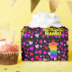 This colourful and joyful birthday-themed wrapping paper design features a large number “1” with a rainbow spectrum gradient inspired pattern, along with the message “Happy 1st Birthday,”, and a personalised name. The background features a pattern of red, pink, and purple heart shapes of various sizes. Birthday themed wrapping paper like this might be a fun way to wrap a gift or present being given to somebody who is celebrating their first birthday. [~Z0000549]