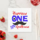 Cute graphic for a little boy who is turning one in red and blue with a black moustache and easy to customise with a personal name