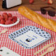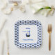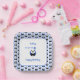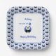 A birthday plate for a one year old. The text is fully editable: Name, caption, greeting. The design features a smiling panda with a blue balloon which has the figure 1 on it. A further pattern of pandas on a light blue background adorns the edge of the plate.