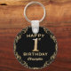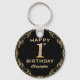 1st Birthday Party Black and Gold Glitter Frame Key Ring