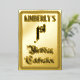 The front of this fancy first birthday party/celebration foil invitation/announcement design features the message “1st Birthday Celebration” in opulent script-style text. It also has a custom name. The back features personalised details about the event, such as the date, time, location, and any other information that may be useful. Opulent, luxurious, editable invitations like these might be used to invite guests to a birthday celebration being held in celebration of somebody’s 1st birthday. [~Z0000596]