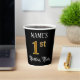 This ornate and elegant birthday paper cup design features a customisable name and the message “1st Birthday Party”. The large number “1st” has an imitation/faux gold-inspired colouring pattern, the words “Birthday Party” are in opulent script-style text, and the background is coloured black by default (although it can be customised). Fancy, luxurious paper cups like this might be useful to have at a birthday celebration being held to celebrate somebody’s 1st birthday. [~Z0000567]