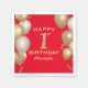 1st Birthday Party Red and Gold Balloons Napkin