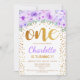 1st Birthday Party - White Gold Purple Invitation