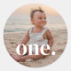 A modern 1st Birthday Birthday design with space to add your own photo and with the word 'one.' over the top. You can change the word to anything else if you prefer!